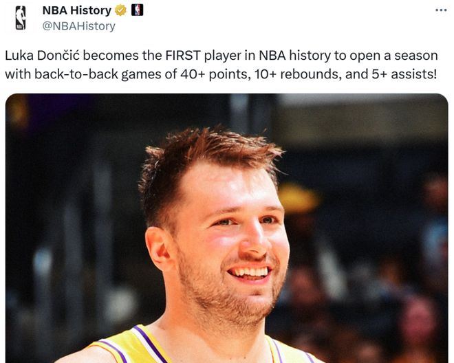 爆砍49+11+8,一战狂刷7大纪录!比起东契奇这5点更该让湖人开心
