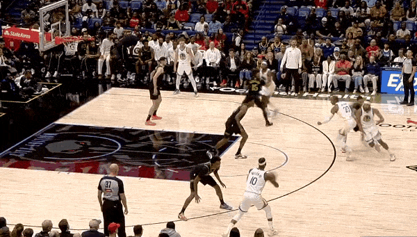 坏消息,杰伦·布朗飞身扑球撞到小琼斯腿后,小琼斯被抬下场